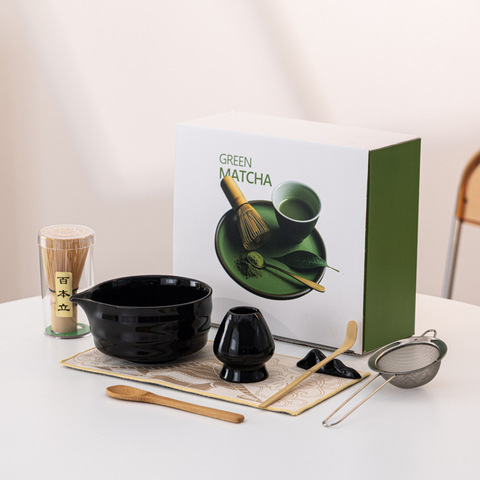 L'ensemble d'outils de Matcha en céramique transformée au four transfrontalier comprend un bol fouet à thé support de cent livres boîte-cadeau japonaise en métal