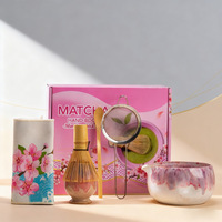 Service à thé japonais Matcha de qualité cérémonielle Logo personnalisé comprenant une cuillère à fouet en bambou Bol en poterie pour le service à fouetter le thé-Vente en gros