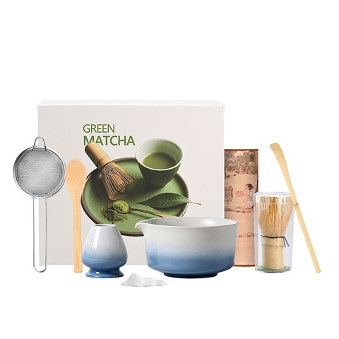 Bol à Matcha en Porcelaine Écologique Moderne en Cinq Pièces Ensemble d'Outils à Thé Boîte à Poudre Matcha Bol à Fouet à Thé Brosse Cuillère Tamis