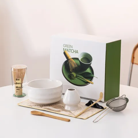 Service à thé matcha en céramique japonaise Fouet Bol à bec verseur Boîte cadeau de style japonais Matériel en papier stocké pour l'appréciation du thé transfrontalier